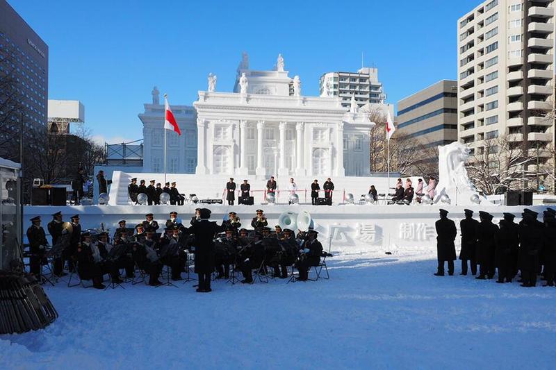 また、会場では自衛隊の楽隊による演奏が行われたほか、札幌観光大使フレンズから自衛隊をはじめ大雪像制作に携われた方々へ花束贈呈も行われ、晴れやかな時間となりました。