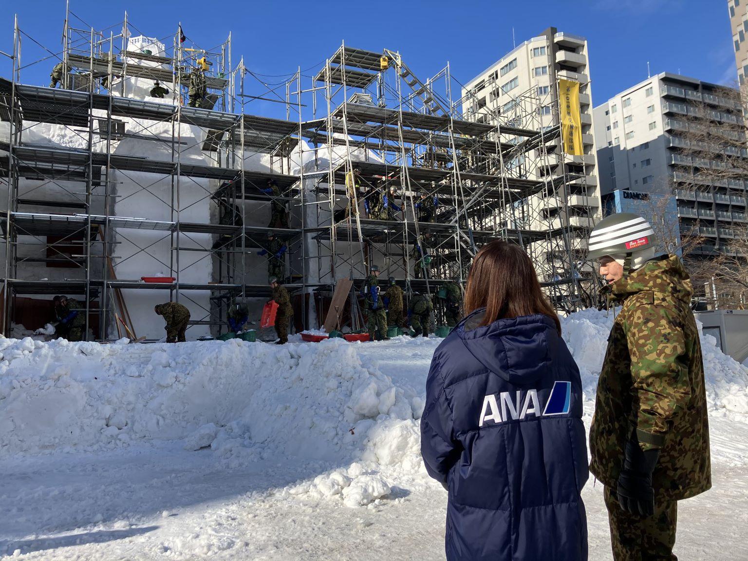 今年は例年よりも気温が高い日が続いているものの、概ね順調に制作が進んでおり、2月4日(火)の開幕に合わせ、綿密に計画しながら日々作業を行っているとのことでした。