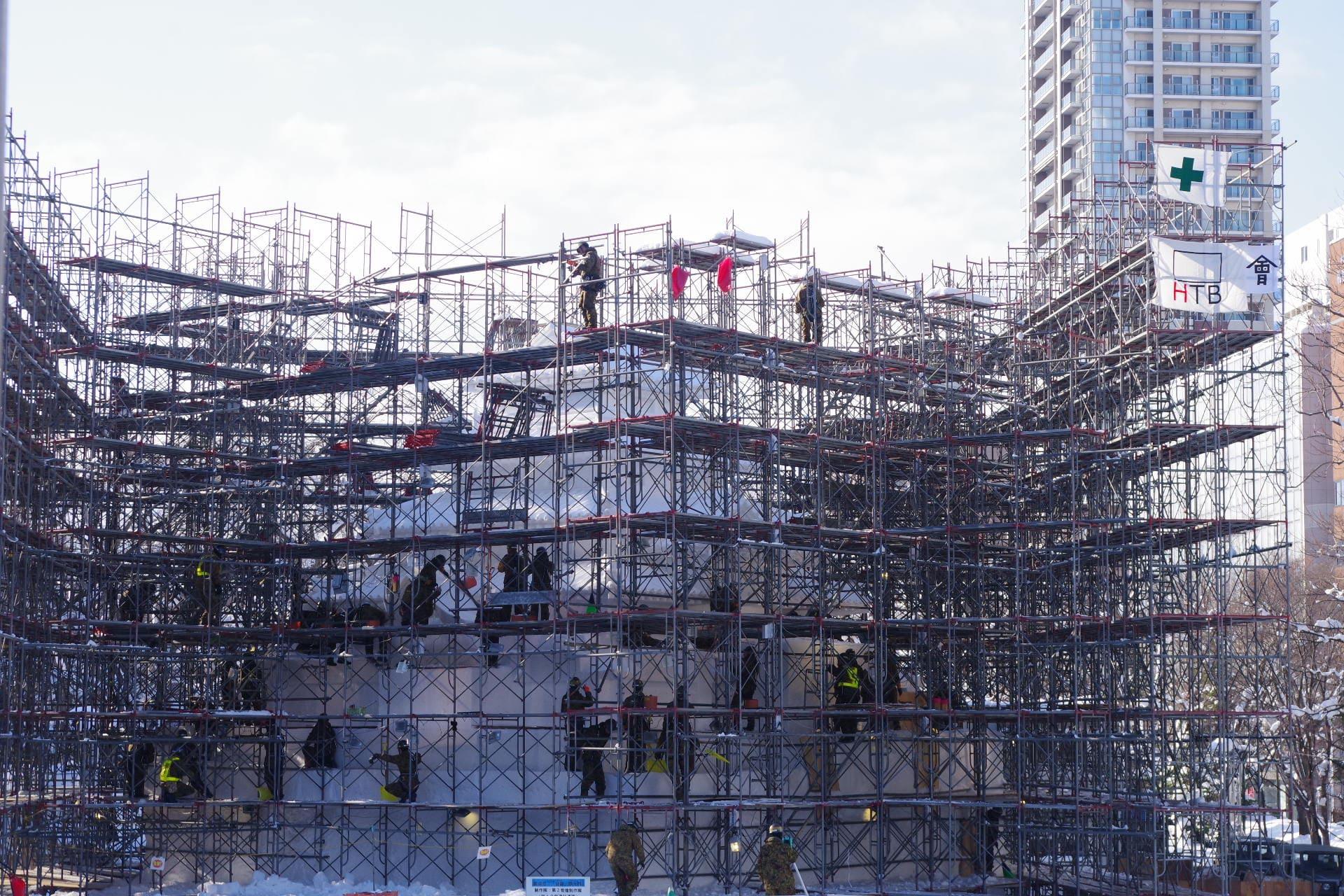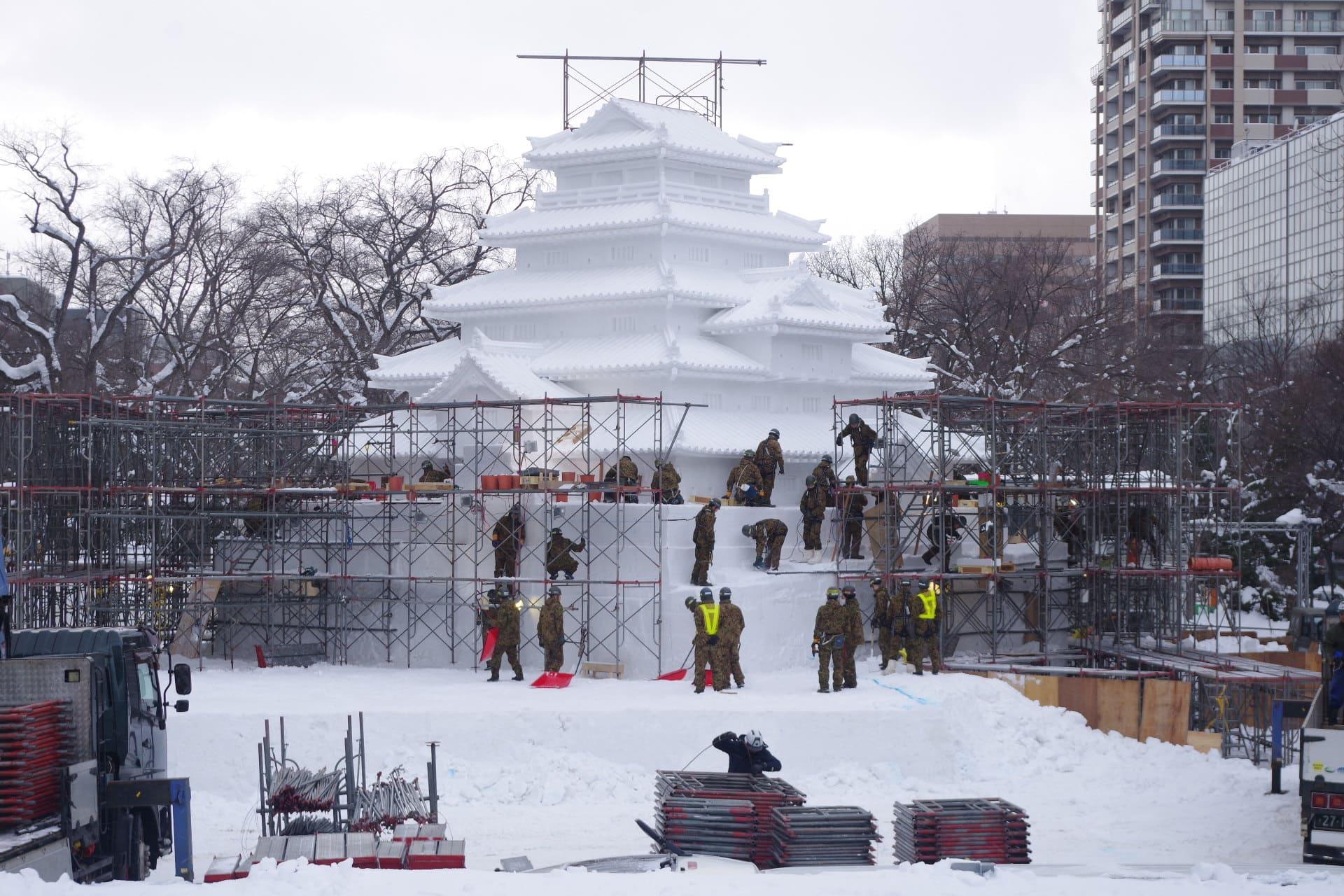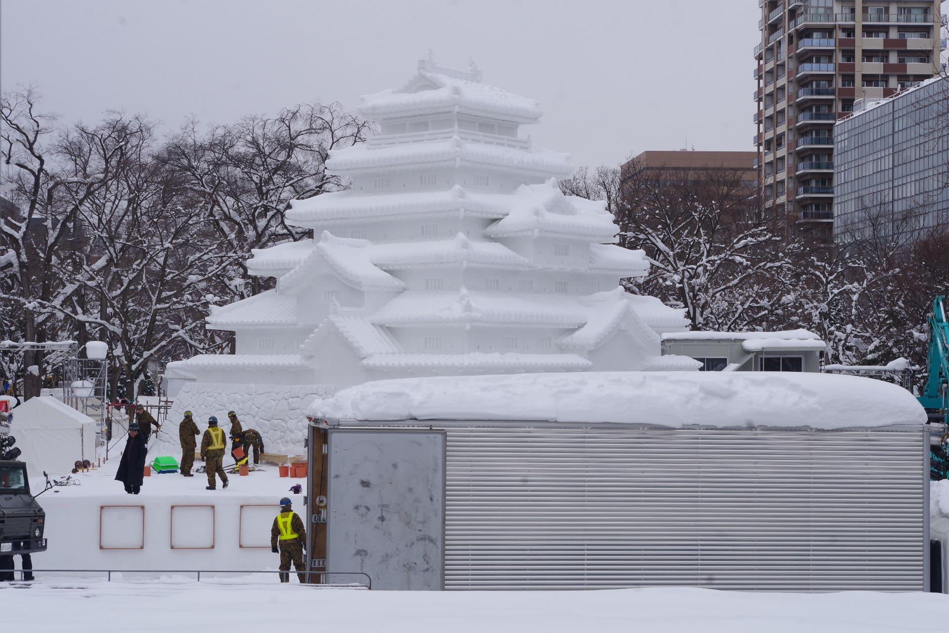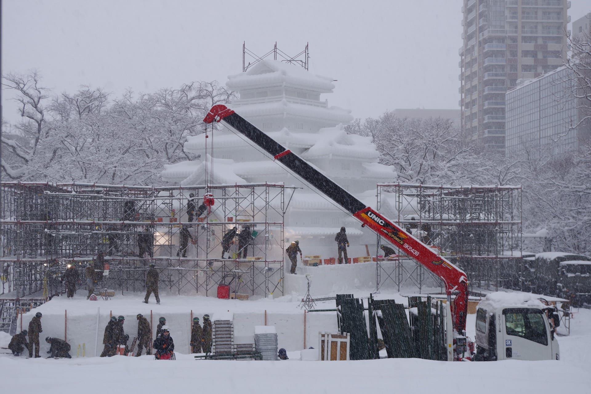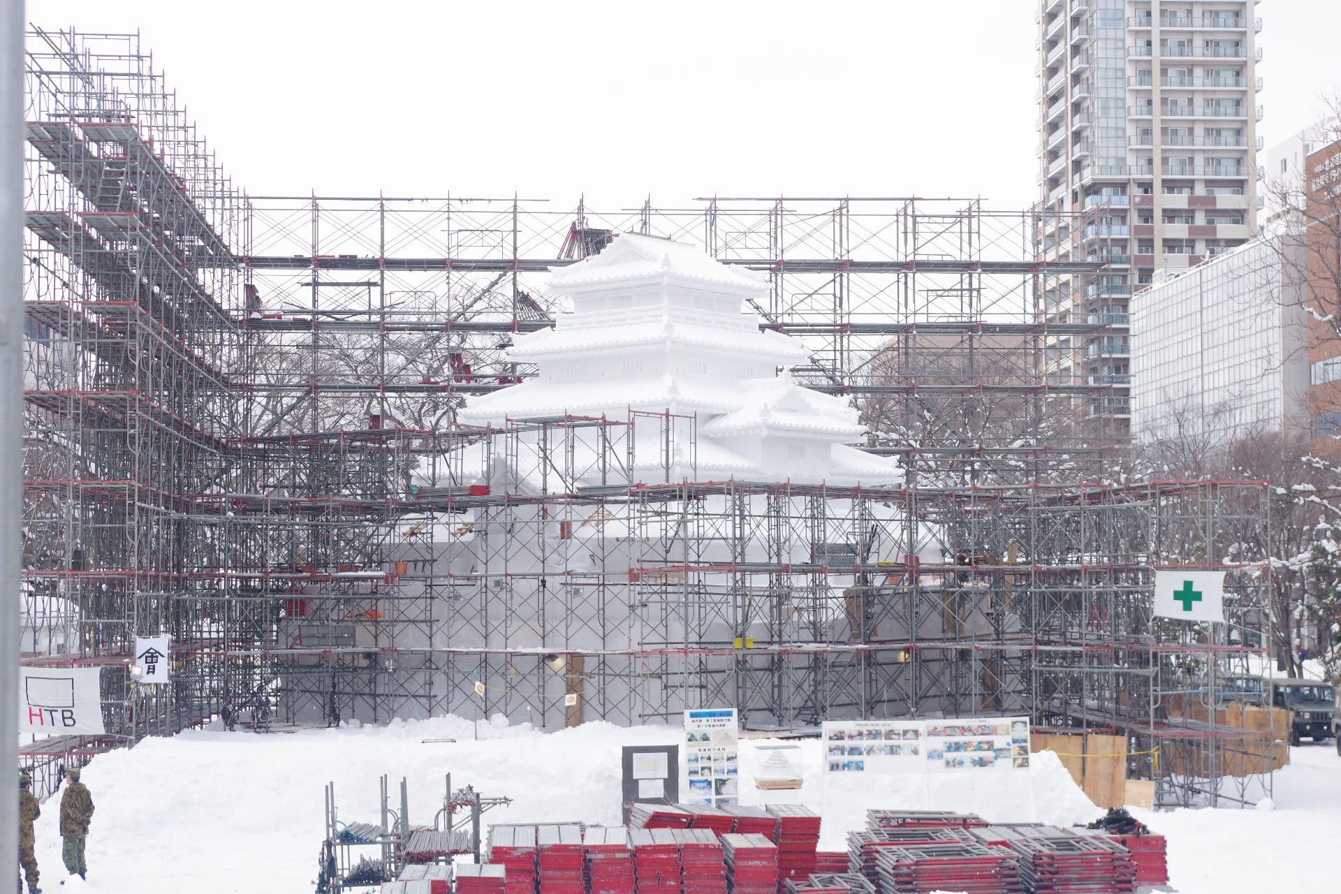 大通会場8丁目雪のHTB広場 会津 鶴ヶ城 大雪像制作の様子をお届けします。