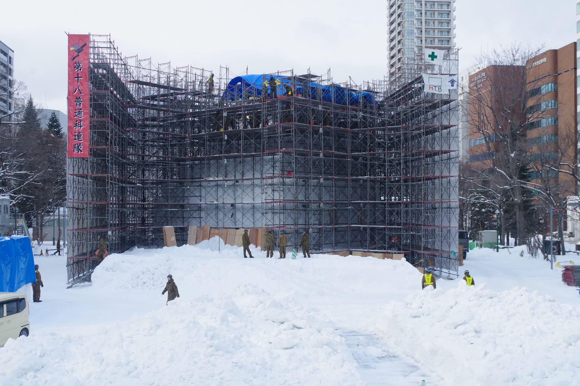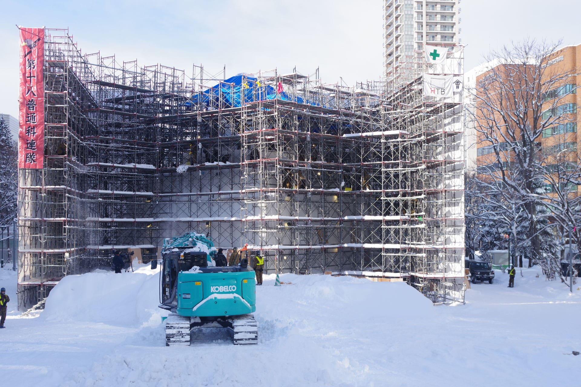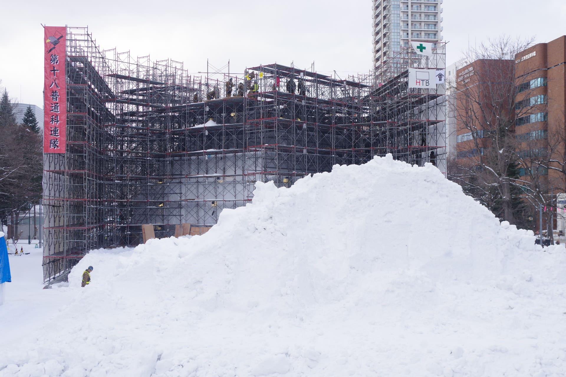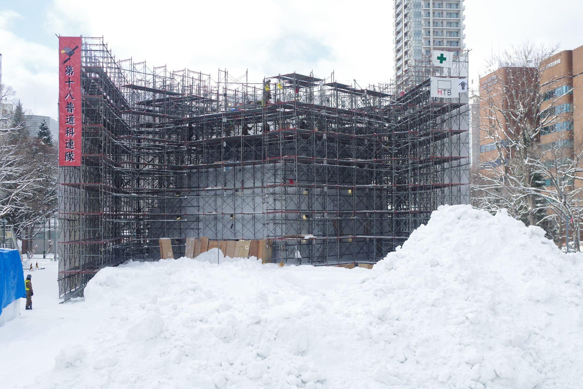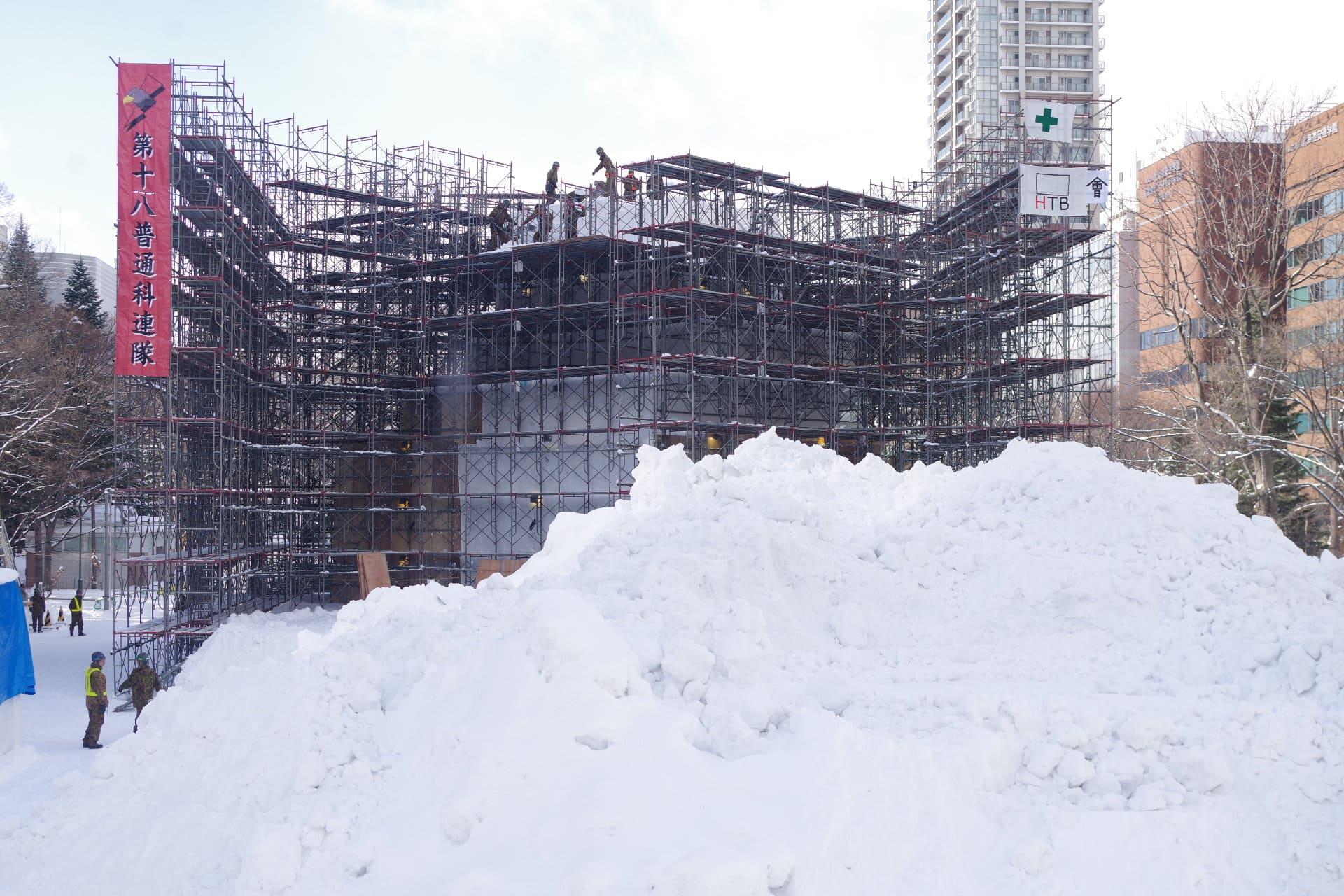 大通会場8丁目雪のHTB広場 会津 鶴ヶ城 大雪像制作の様子をお届けします。