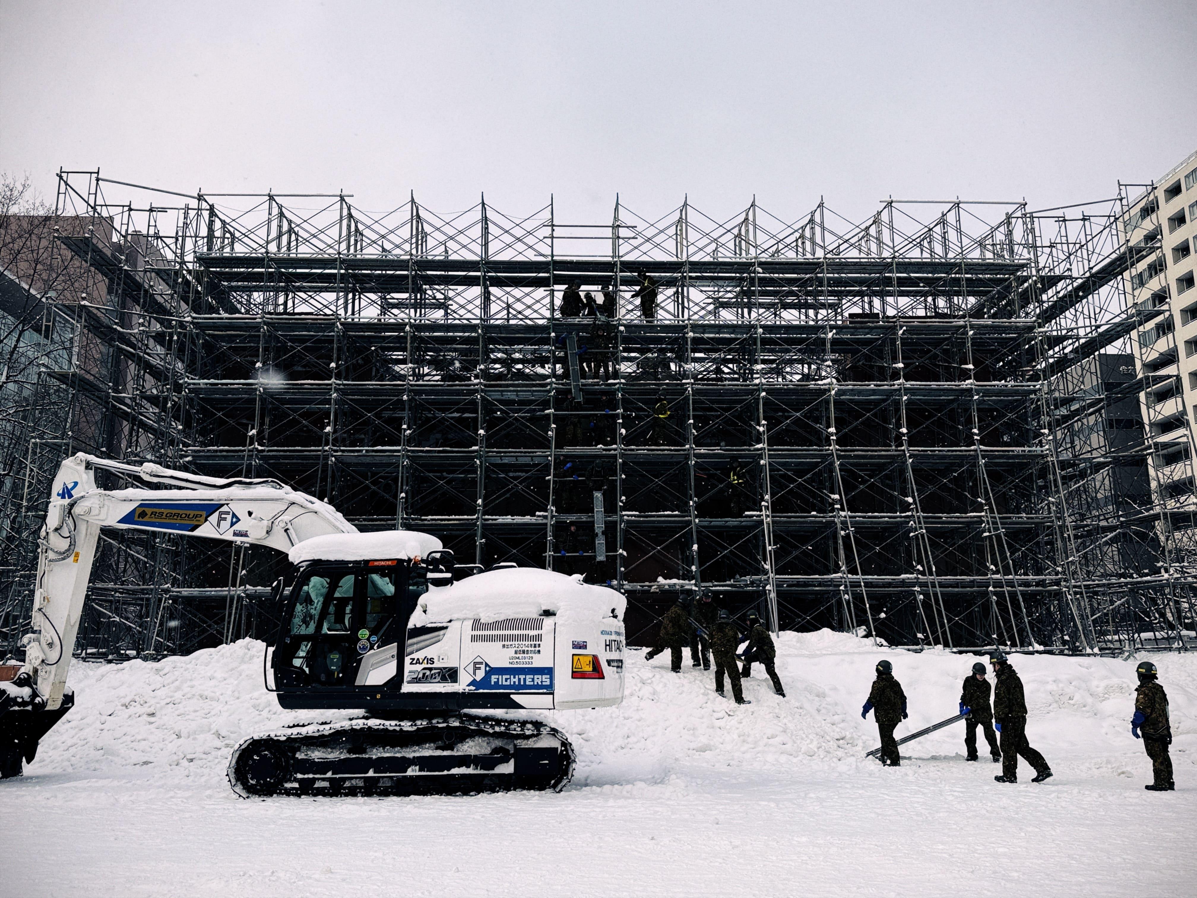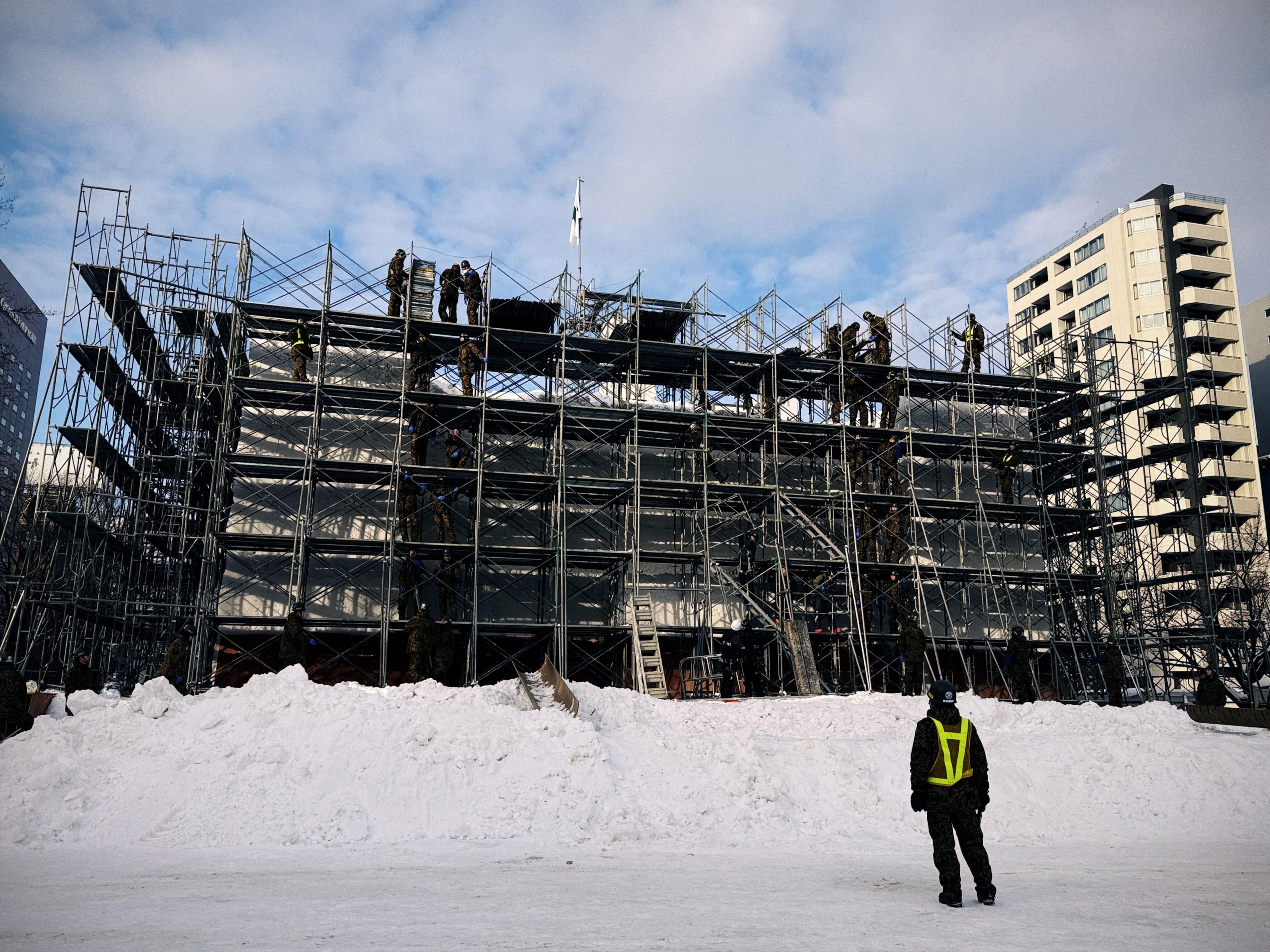 大通会場7丁目HBC広場 北海道大学 古河講堂 ~「光は、北から」北海道大学創基150周年~ 大雪像制作の様子をお届けします。