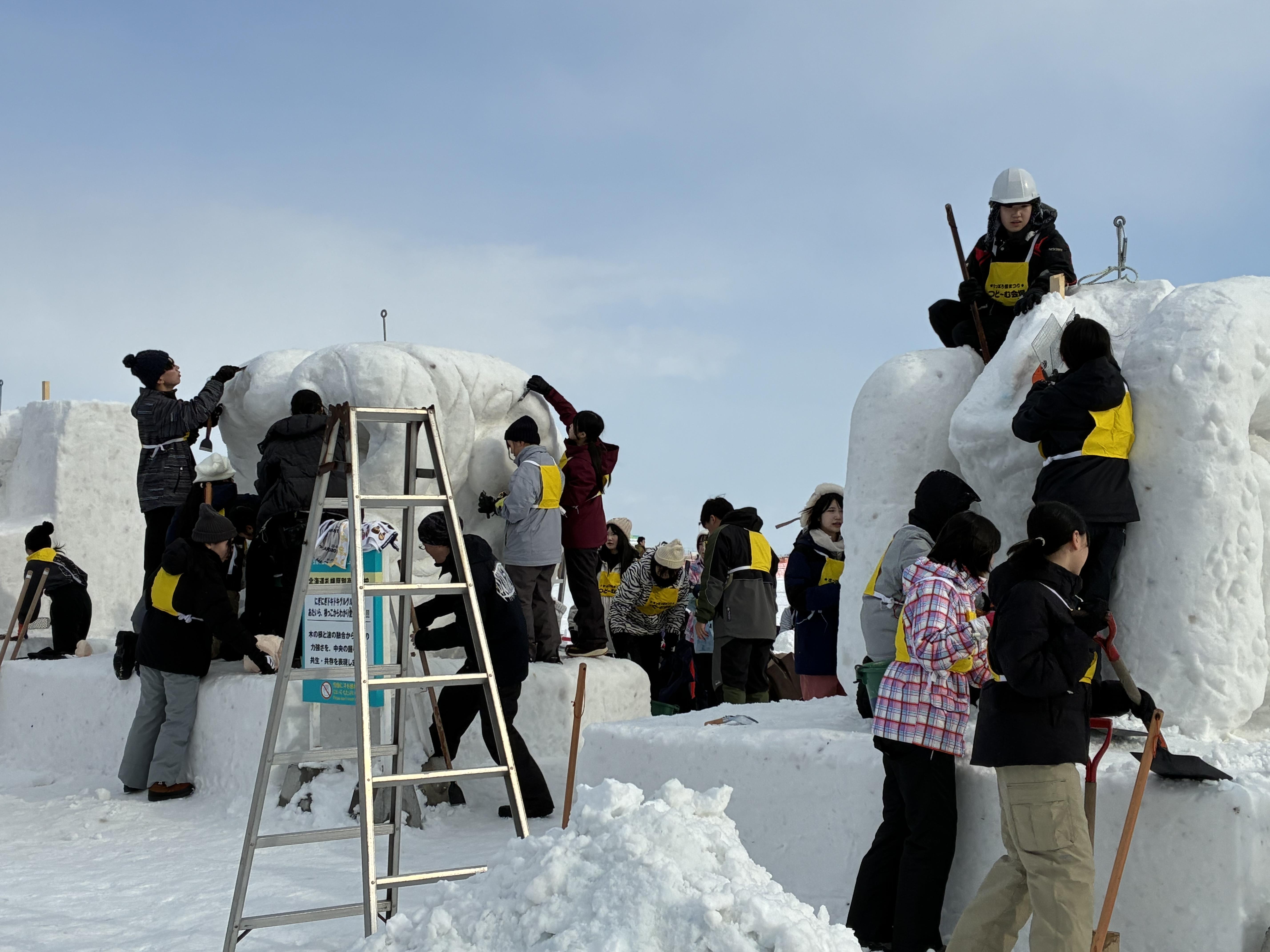 さらに、札幌市内を中心とした高校美術部の生徒たちが参加する雪像制作コンテスト「スノーオブジェコンテスト」も開催され、力作ぞろいの作品が並びました。